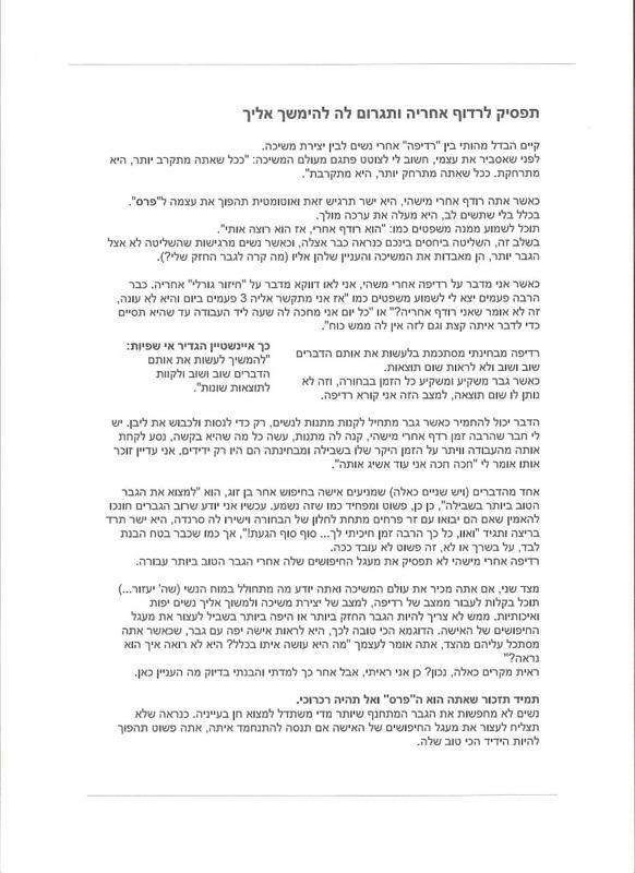 איך אתה עושה את זה ? לומד מטעויות של אחרים ולא אומר לה שאתה רוצה לחזור אליה .